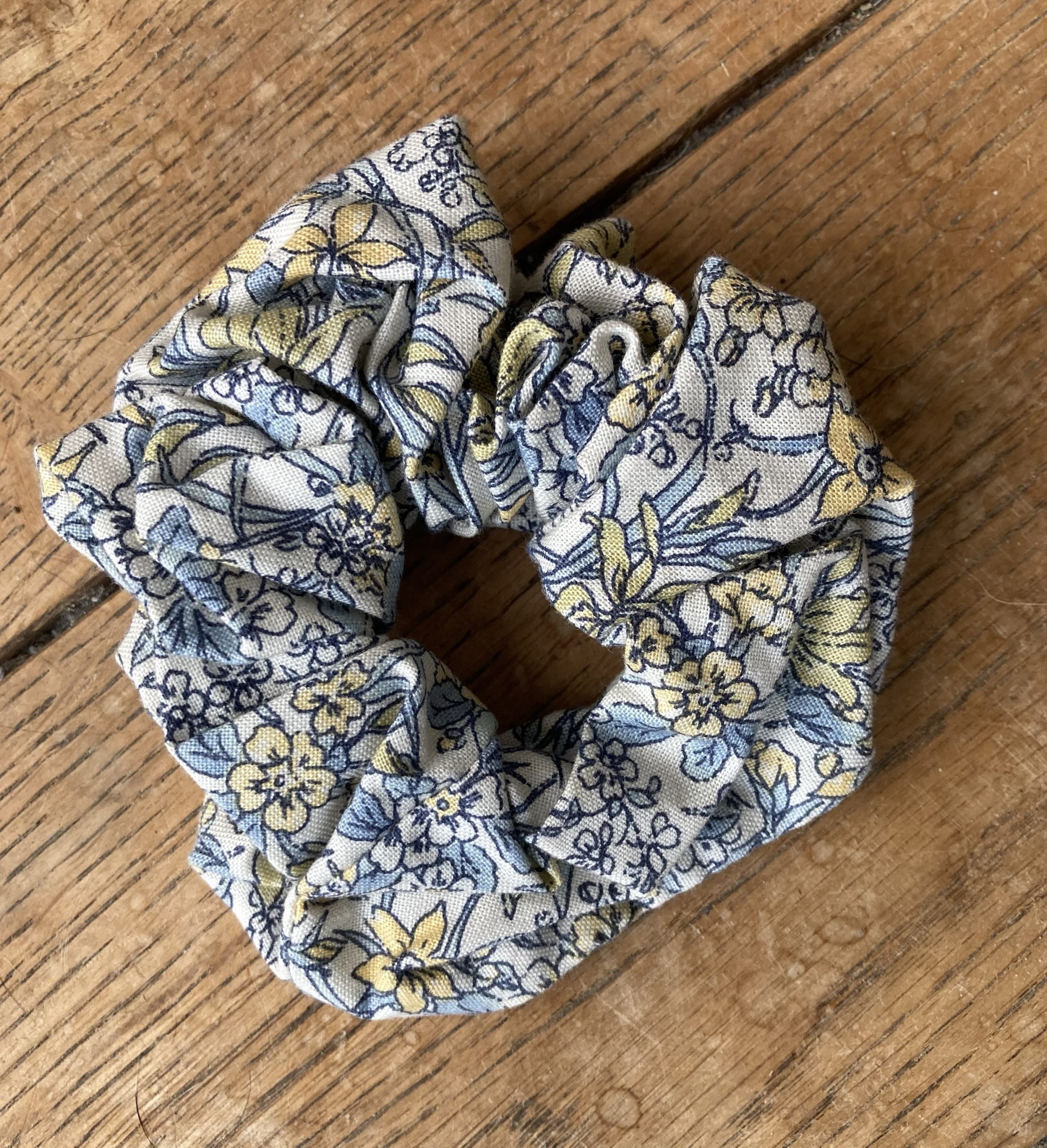 Shaped to tie 100% cotton stock and scrunchie – Liberty of London Ricardo blue/yellow